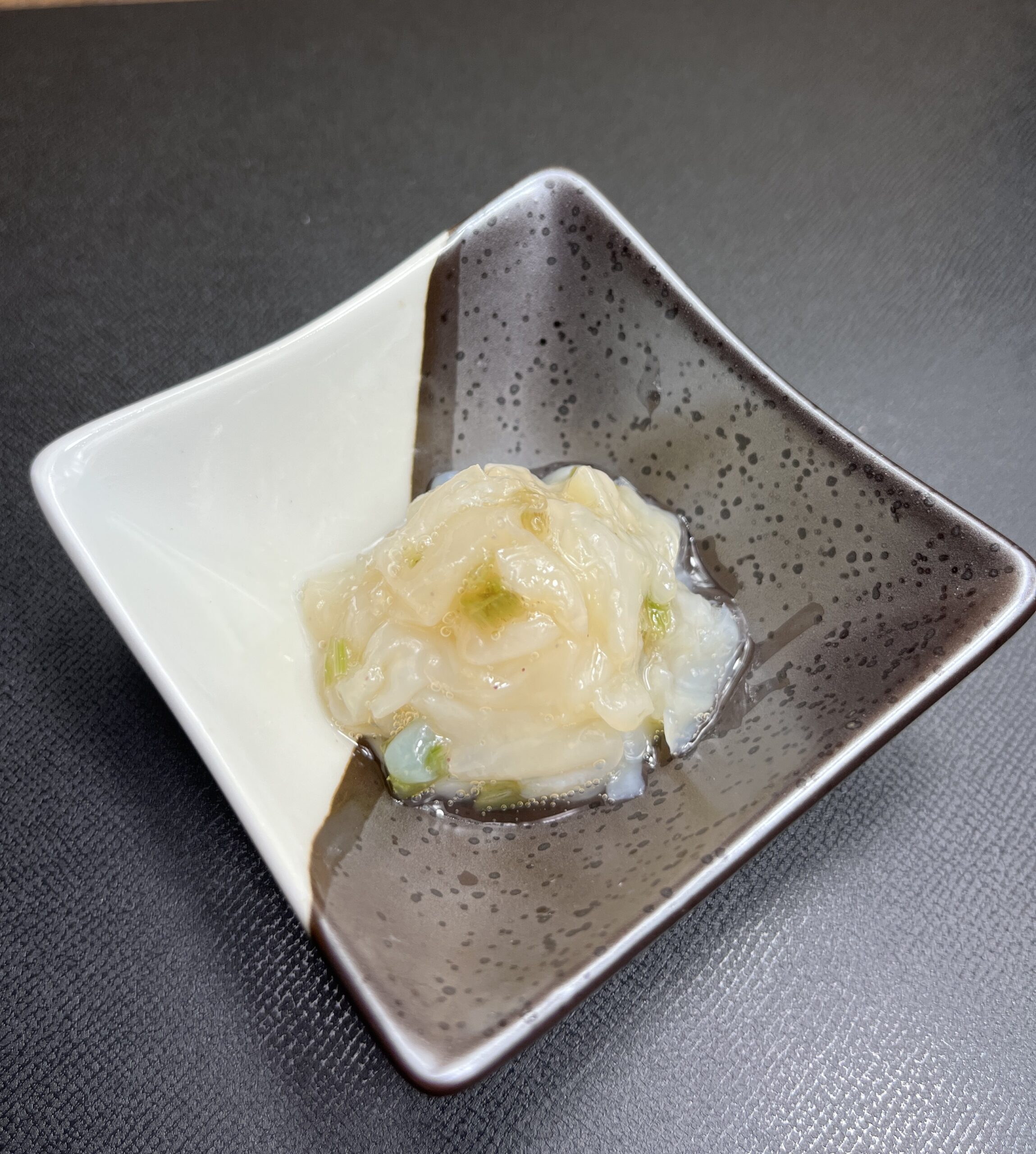 北海道産のほたてのひもを茎わさびで合わせました。