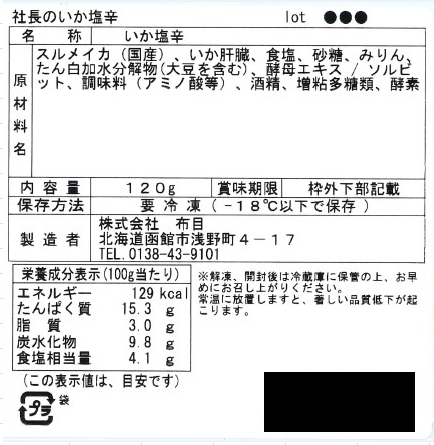 その昔、当時の社長(現会長)が得意先回りの際に手土産として配った塩辛が好評だったことから商品化された塩辛です。国産の真いかを使用し、保存料や着色料を一切使わず、いか本来の旨味を最大限に引き出しています。部位ごとの異なる食感が楽しめるのも特徴で、一度は味わっていただいたい塩辛です。